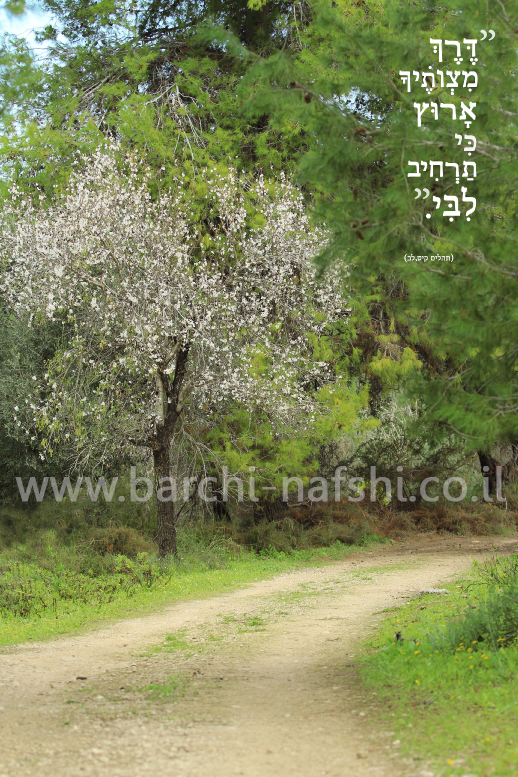 תמונת נוף מעוררת בשילוב פס' מתהלים קיט, "דרך מצוותיך ארוץ".. אזור צילום-מורדות הרי ירושלים.