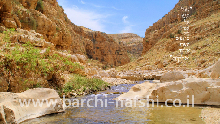 תמונת נוף עם פסוק מתהלים, כאיל תערוג,הבעה של תשוקה וערגה אליו.