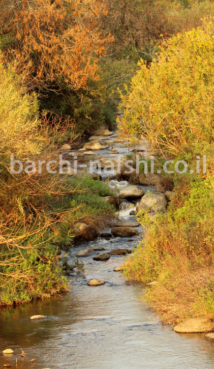 תמונה של זרימה בנחל משושים, צולם בסתיו. פיתוח על קנבס.