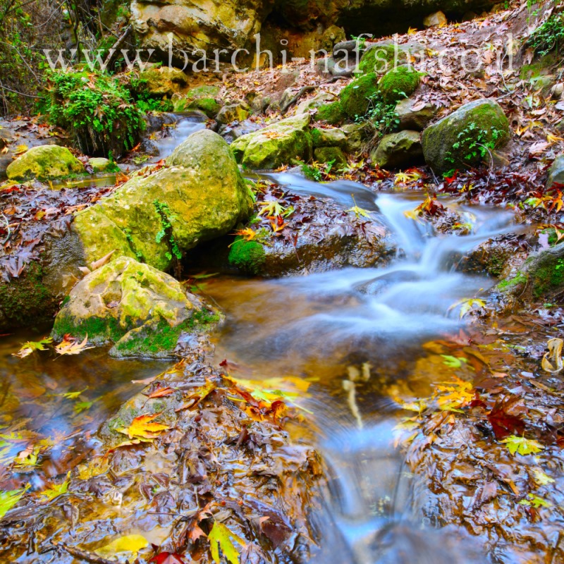 צילום אמנותי ומרגיע של צבעי הסתיו בין זרימת המים בנחל עמוד.