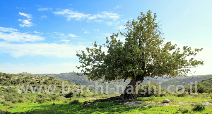 תמונה של עץ חרוב עתיק, אזור צילום- שומרון. פיתוח על קנבס.